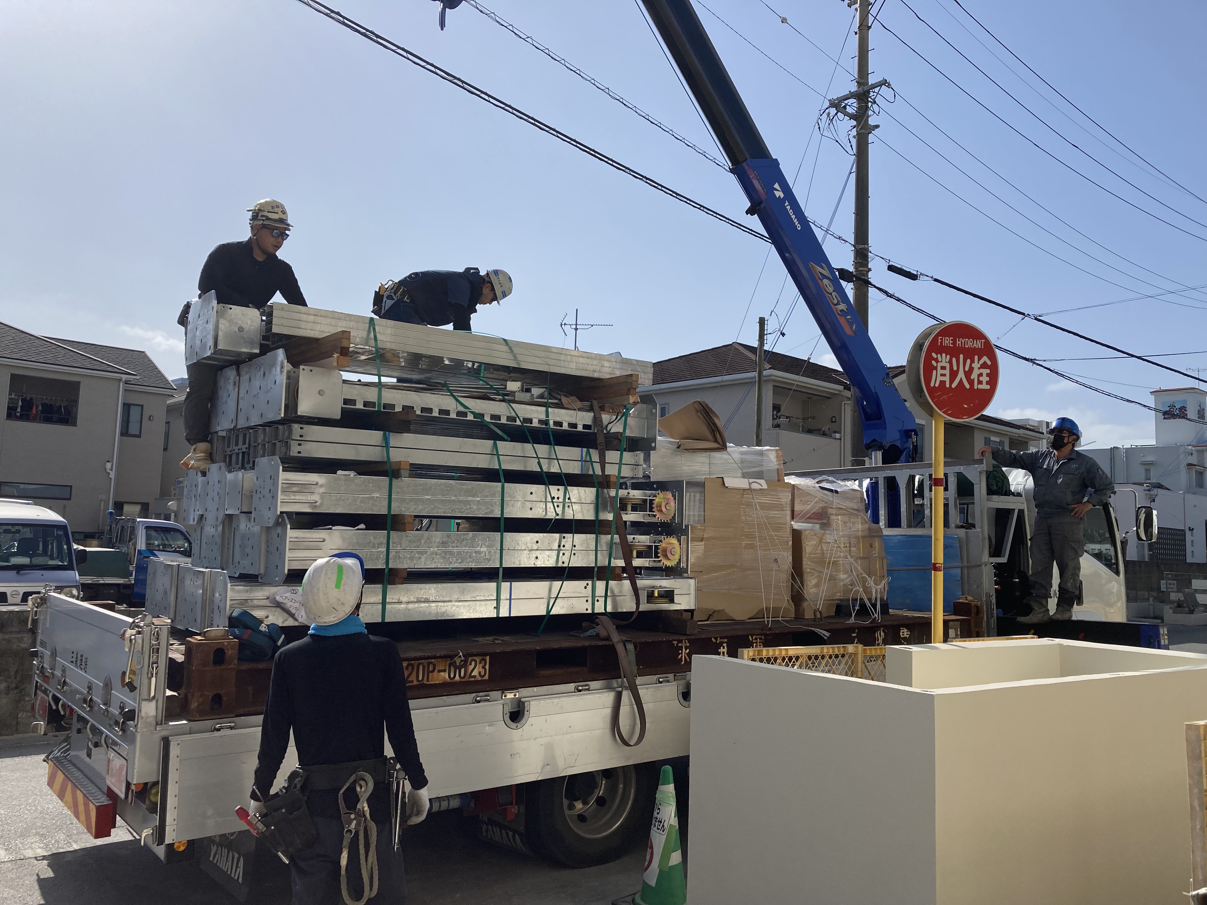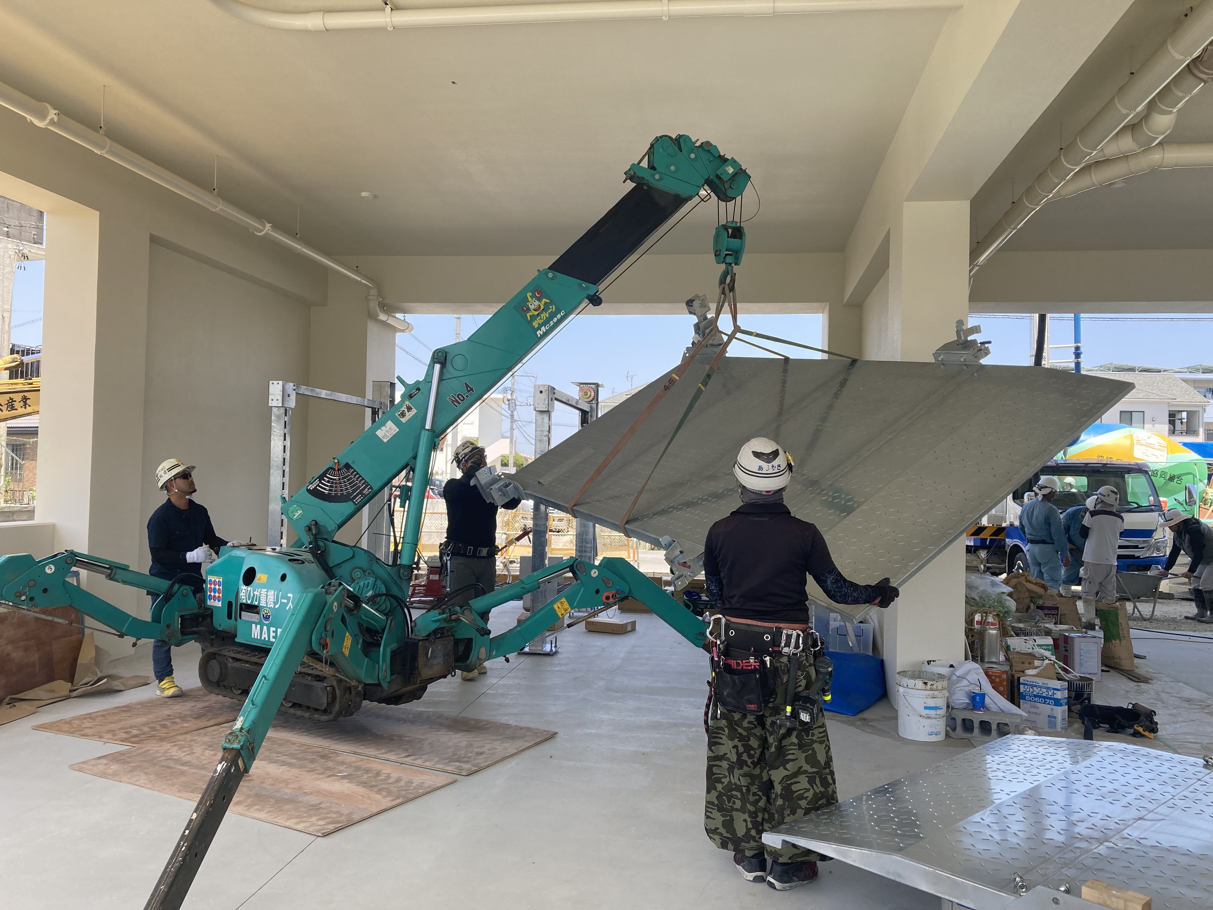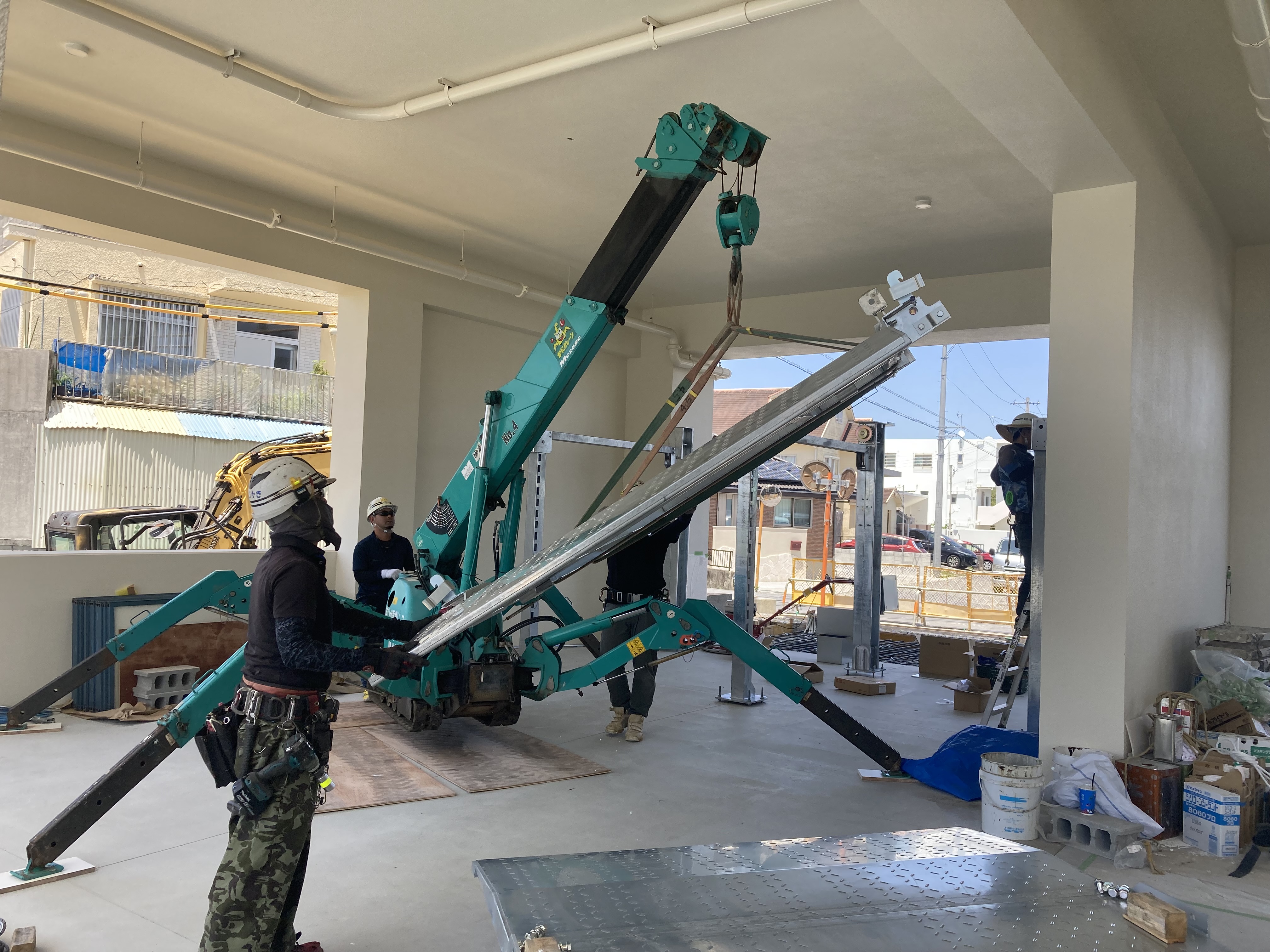 こちらの物件も一部屋内設置があるので、カニクレーンを使用します!