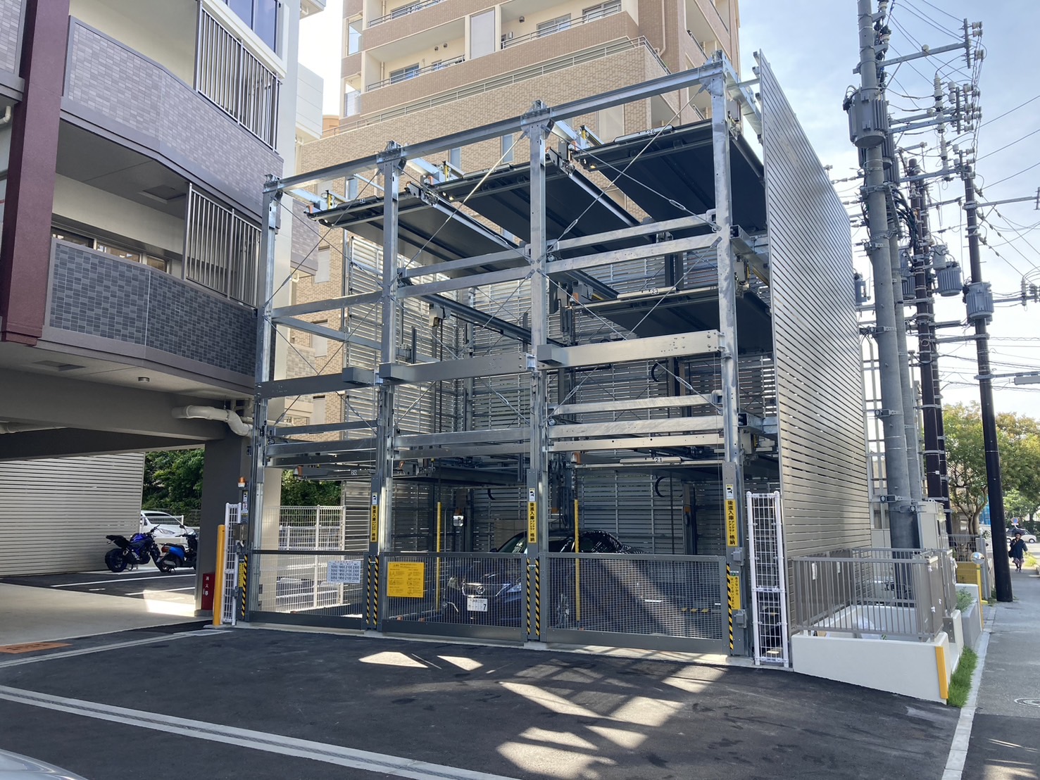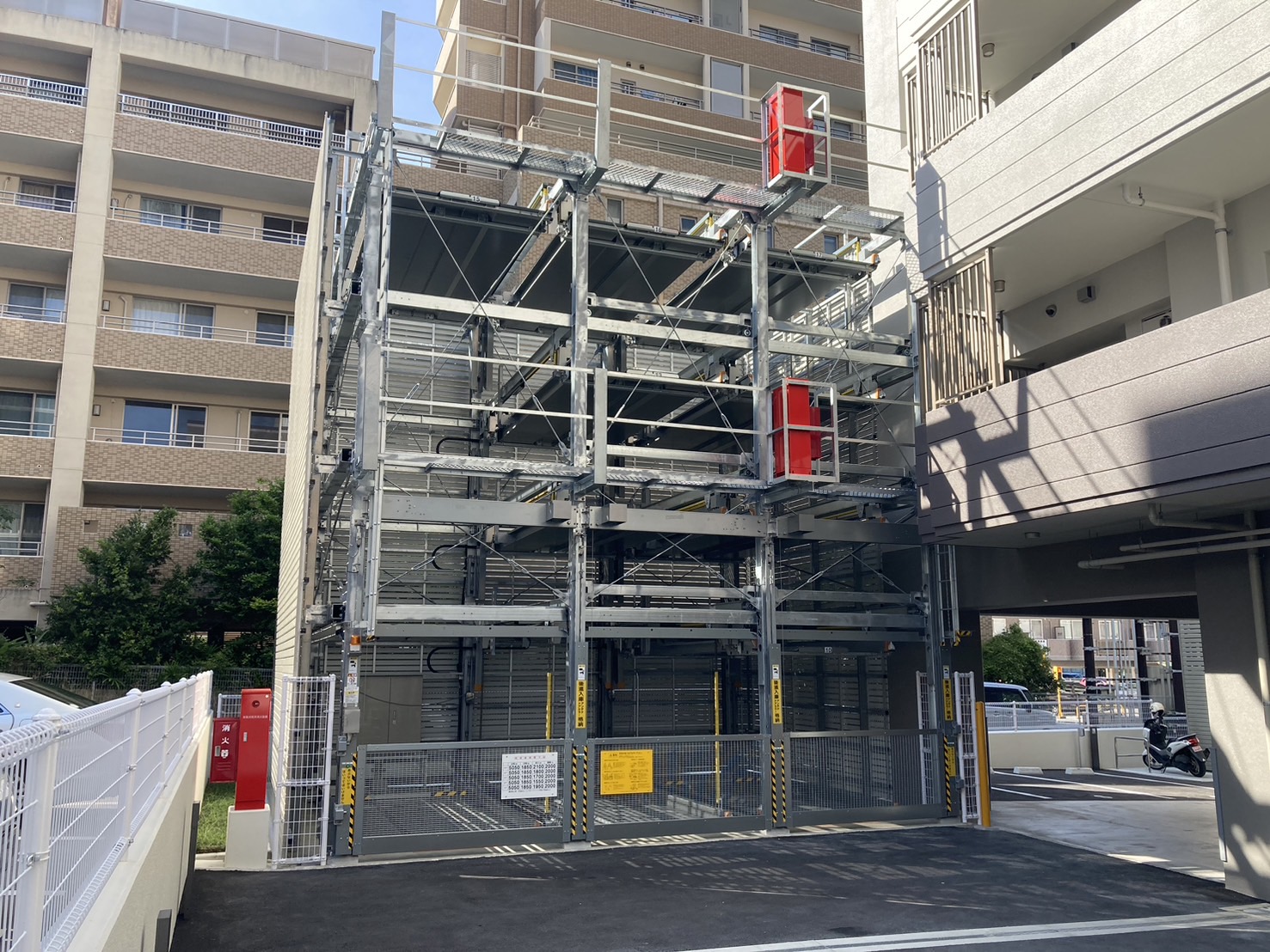 マンションと駐車装置の距離がかなり近く