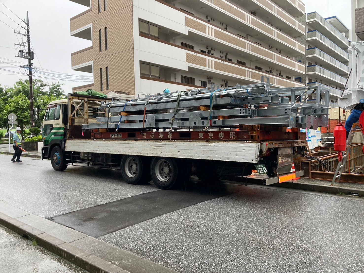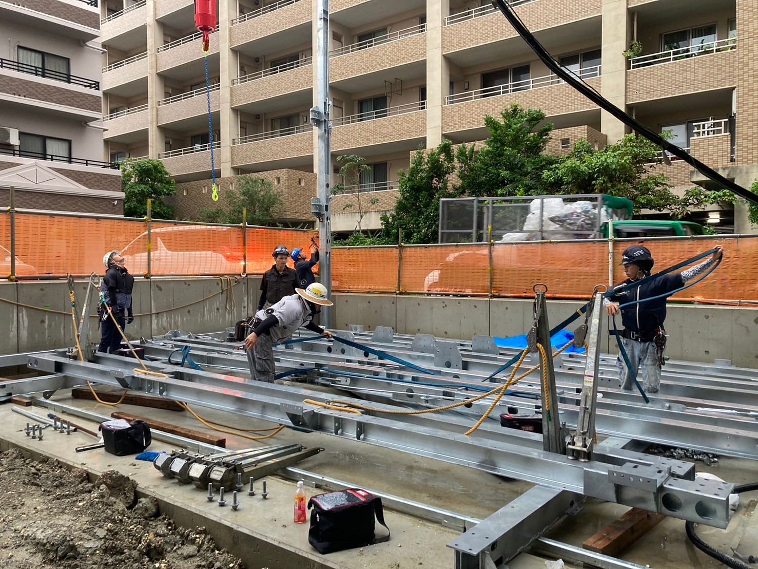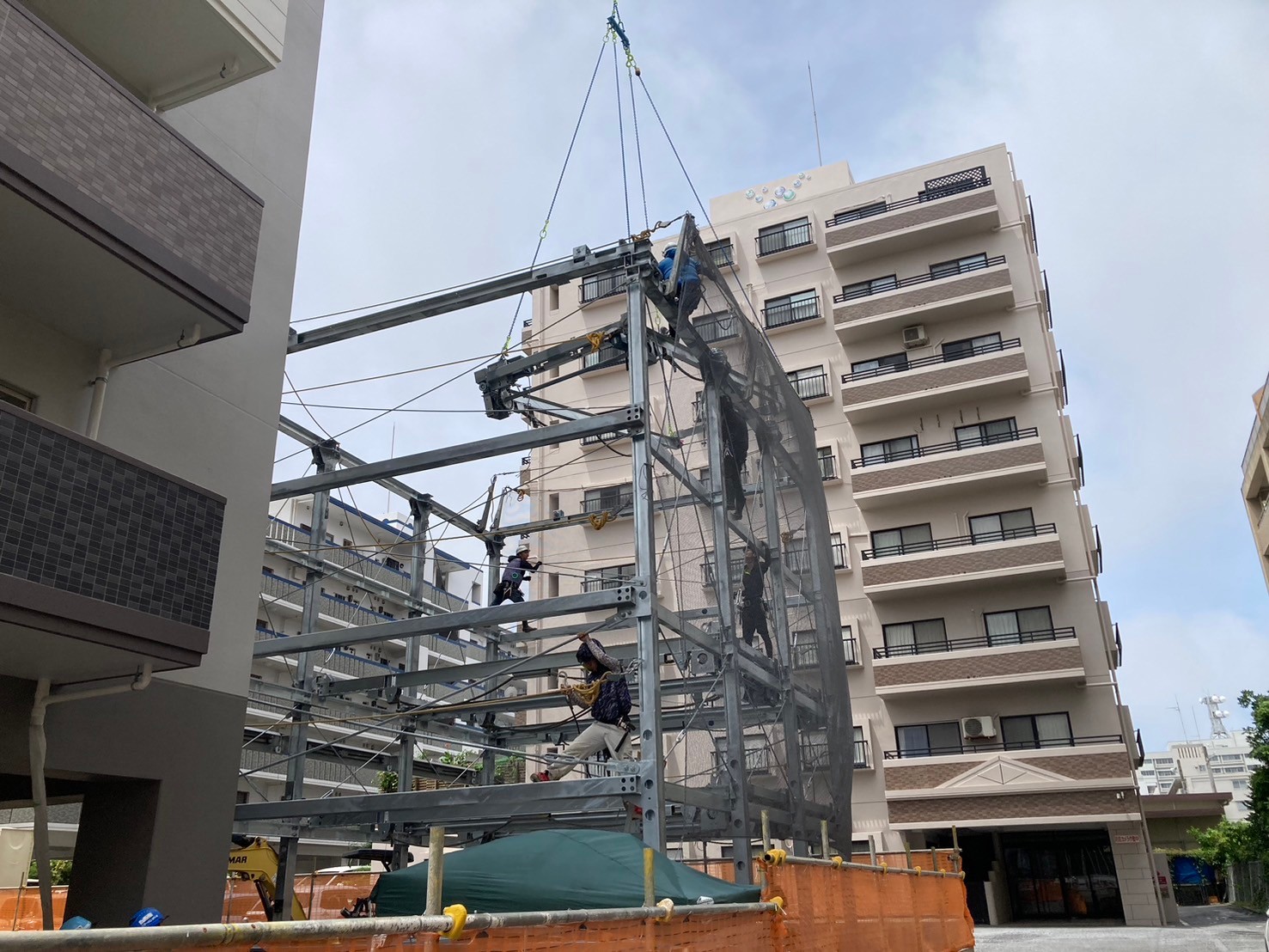 クレーンでの施工時はかなり慎重に行いました(;'∀')