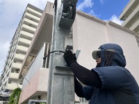雨の中傘を差しながら操作用押しボタンを押し続けるのは不便…